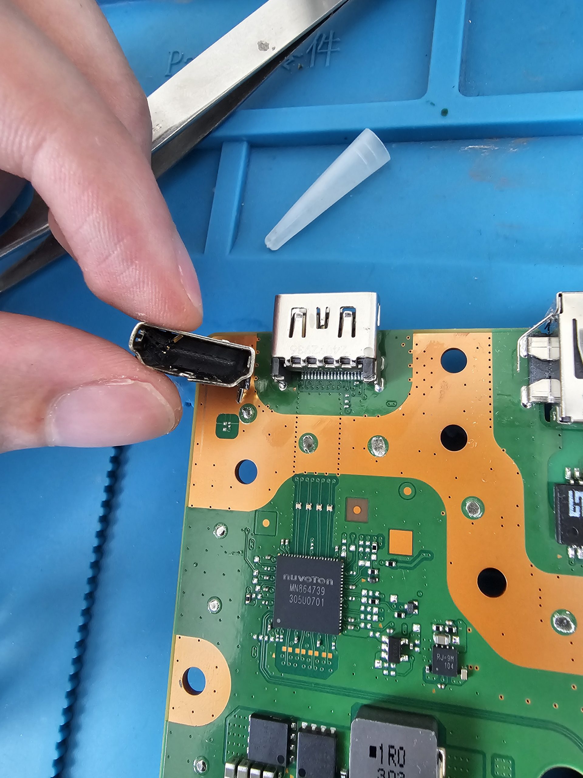 J’ai reçu cette Nintendo switch qui ne démarrait plus du tout La panne n’était pas liée au port de charge ni à la puce de charge mais à une ligne secondaire en court-circuit. Cas extrêmement