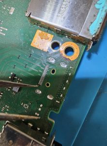 Pour un non-initié, cela pourrait ressembler à la fin de vie de la console. Mais pour notre atelier spécialisé en microsoudure à Estinnes, ce n’est qu’un défi à relever !