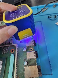 Qu’à cela ne tienne ! Avant de souder un nouveau port HDMI, il était impératif de reconstruire la connexion endommagée. Grâce à notre expertise en microsoudure, nous avons méticuleusement recréé la piste arrachée sur la carte mère. C’est une opération de haute précision qui permet de transmettre le signal du port hdmi vers la carte mère.